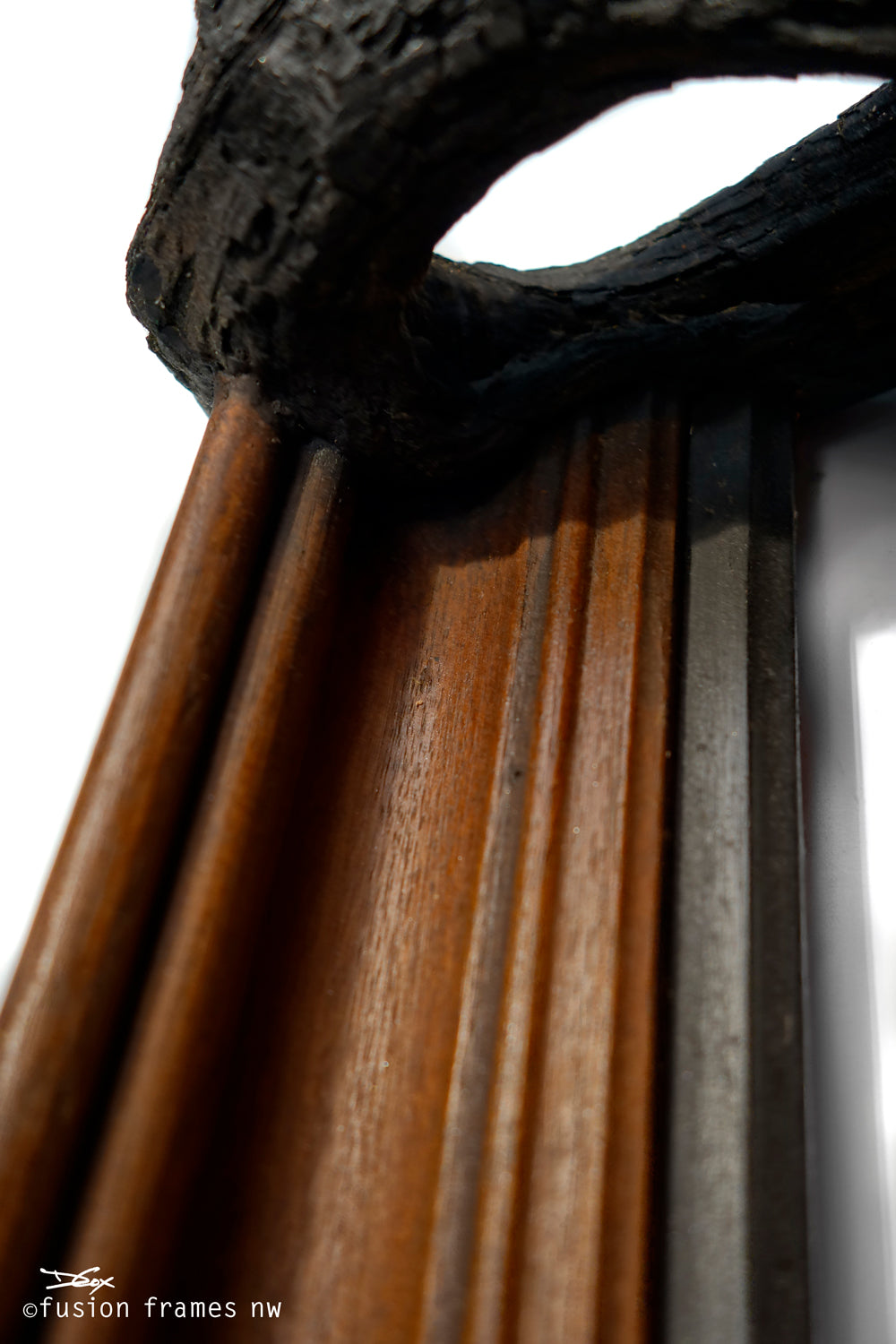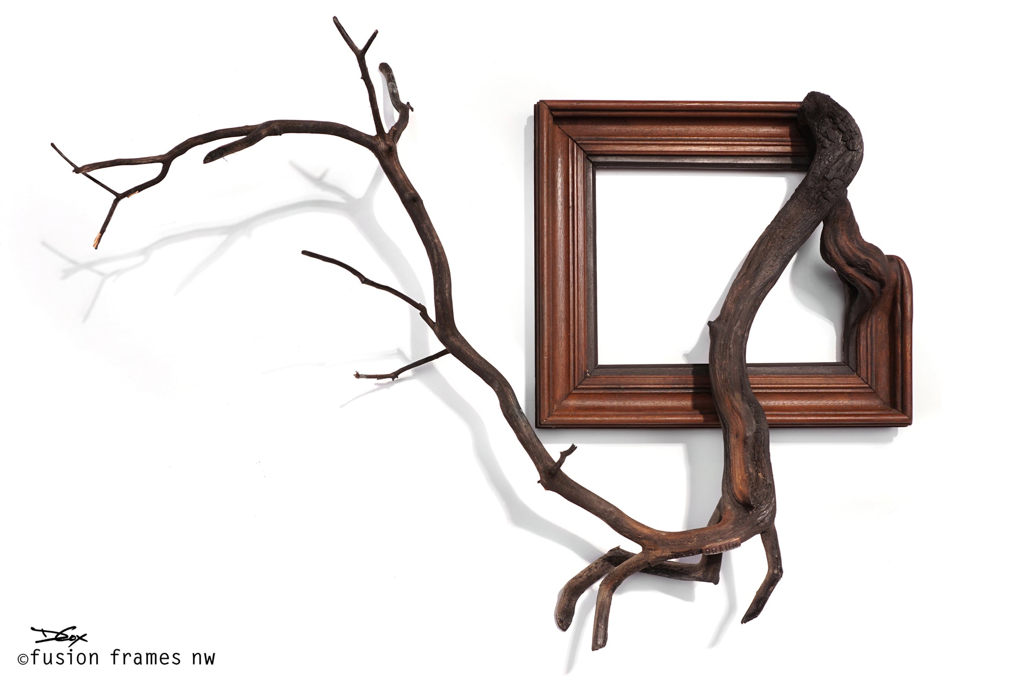 Repurposed Antique Eastlake Frame (mahogany) acquired from a Central Oregon antique merchant unified with charred Manzanita Branch reclaimed from the Deschutes National Forest.